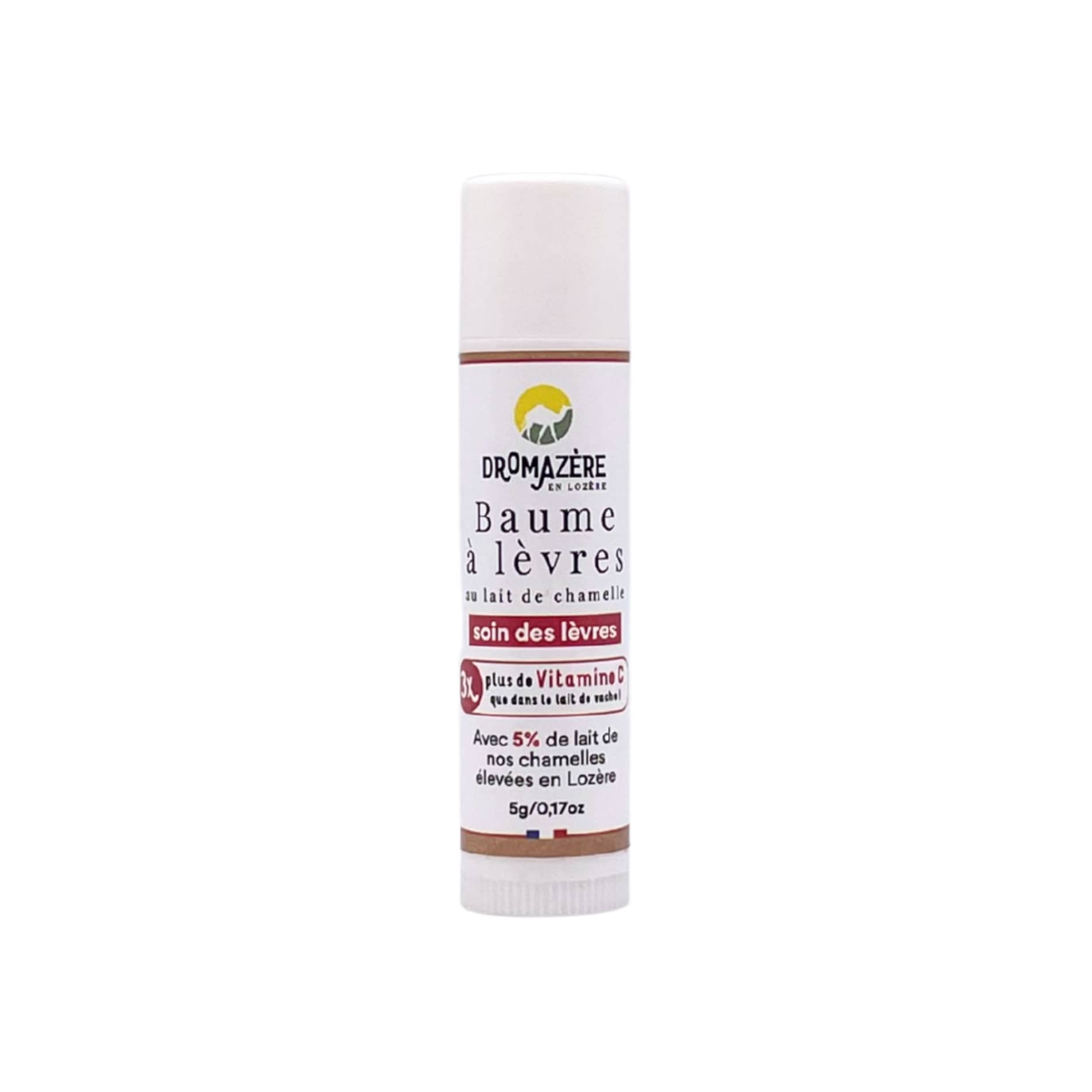 Notre baume à lèvre a été fabriqué artisanalement dans le sud de la France, avec 5% de lait de nos chamelles élevées en Lozère.