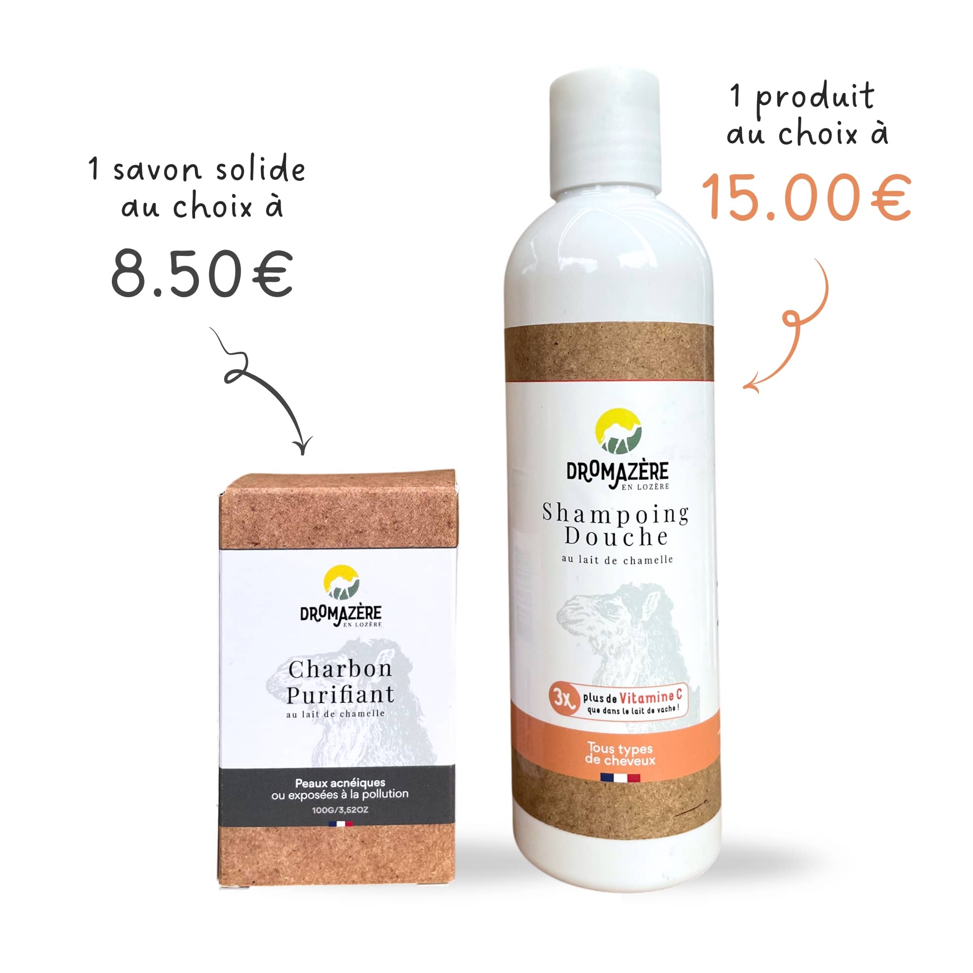 Choisissez un savon solide, puis ajoutez un produit de notre gamme au format 250 ml.