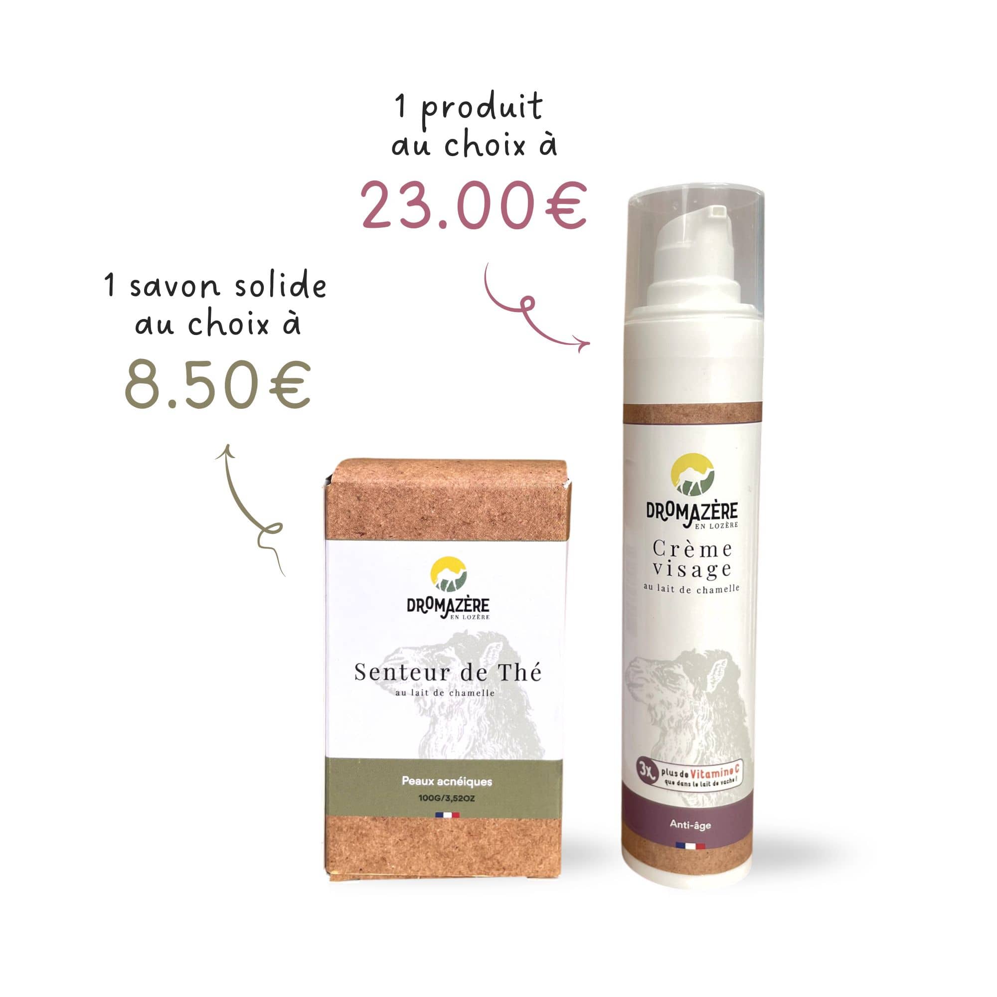 Formulés sans huile de palme nos savons sont fabriqués à base de lait de chamelles élevées en Lozère.
